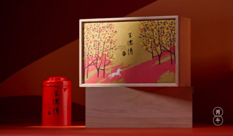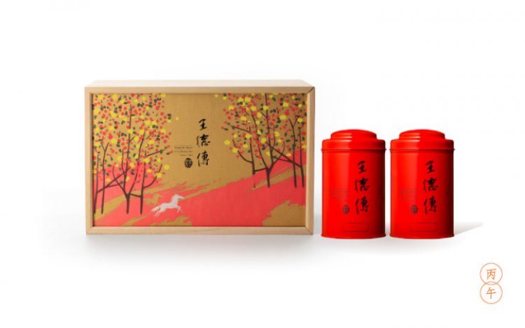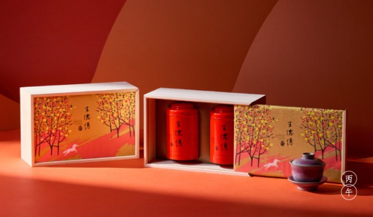 梧桐木抽屜禮盒,絹布盒蓋結合絲網與燙金工藝,質感金光閃耀細緻。馳澄禮盒以德傳經典紅色茶罐,獻上兩款輕重口感的臺灣好茶。